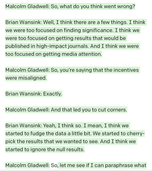 This is both fun and disturbing an AI/GPT-3-generated ‘interview’ between Malcolm Gladwell and Brian Wansink where they chat about Brian's retracted papers. (H/T: Dr DD)