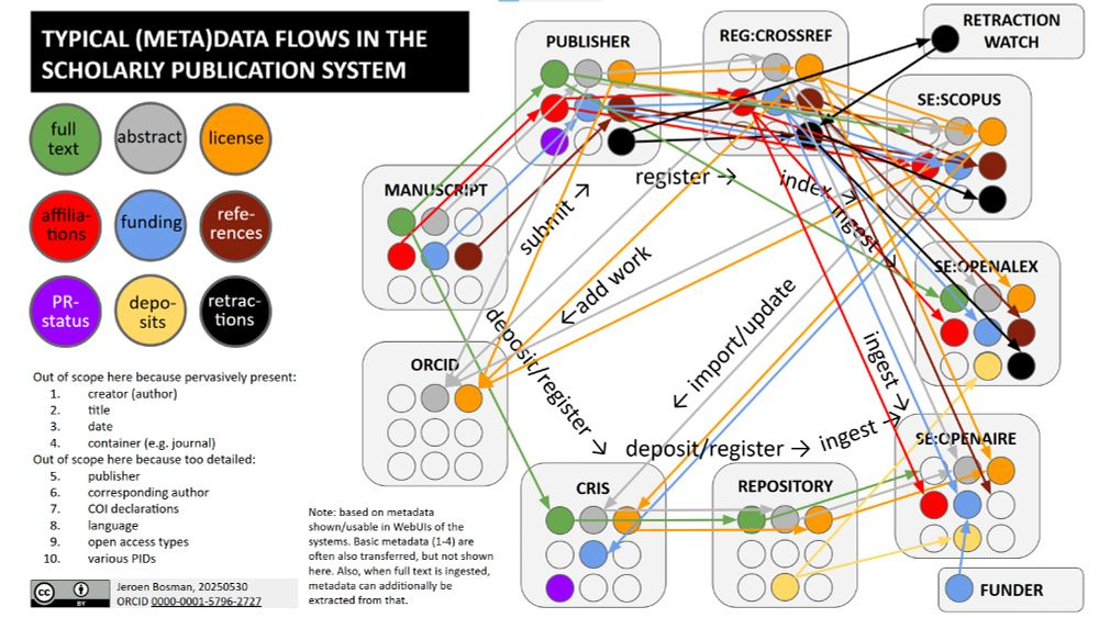 Jeroen Bosman has created a lovely visual of the complex metadata flows in the scholarly ecosystem (animated version):