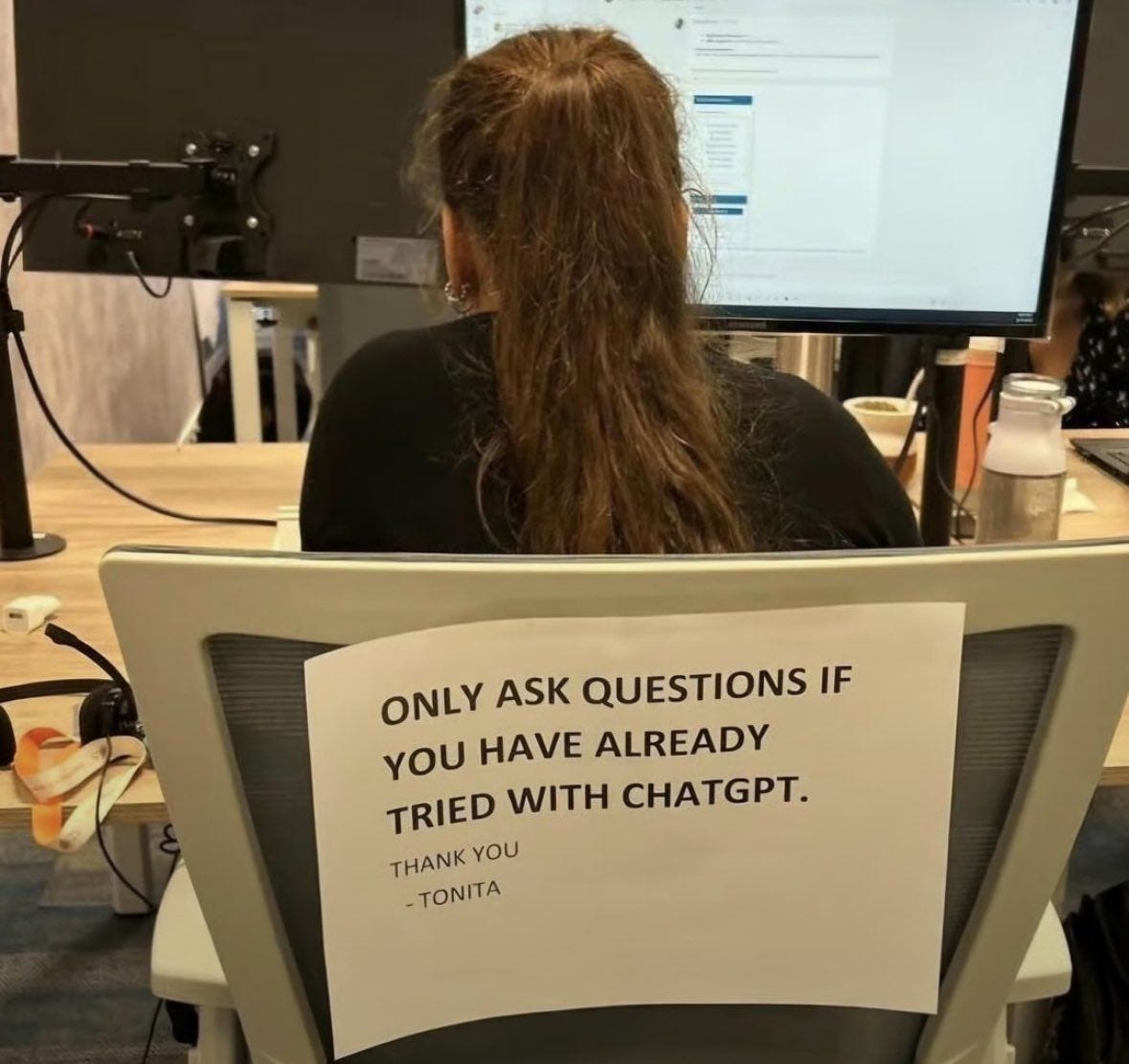 This photo from Jr Kibs made me smile. I wouldn’t be surprised if someone had wanted to print this out for me back in the day. ‘Ask ChatGPT first’ might’ve spared a few sighs and raised eyebrows. Still, I miss asking people directly - and the conversations that followed.